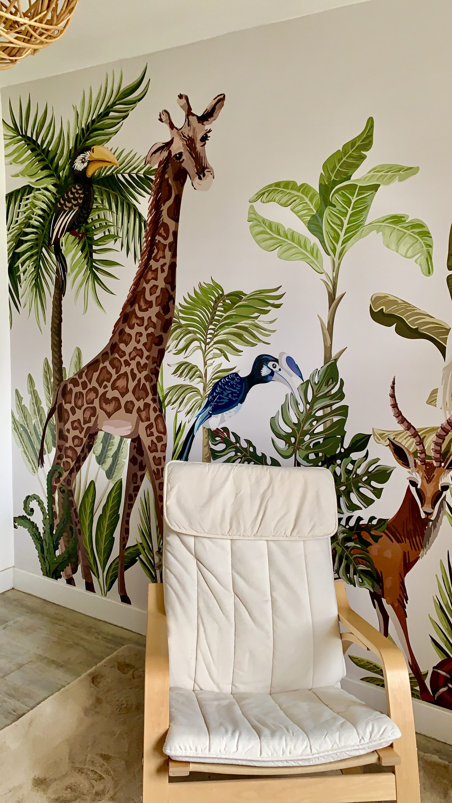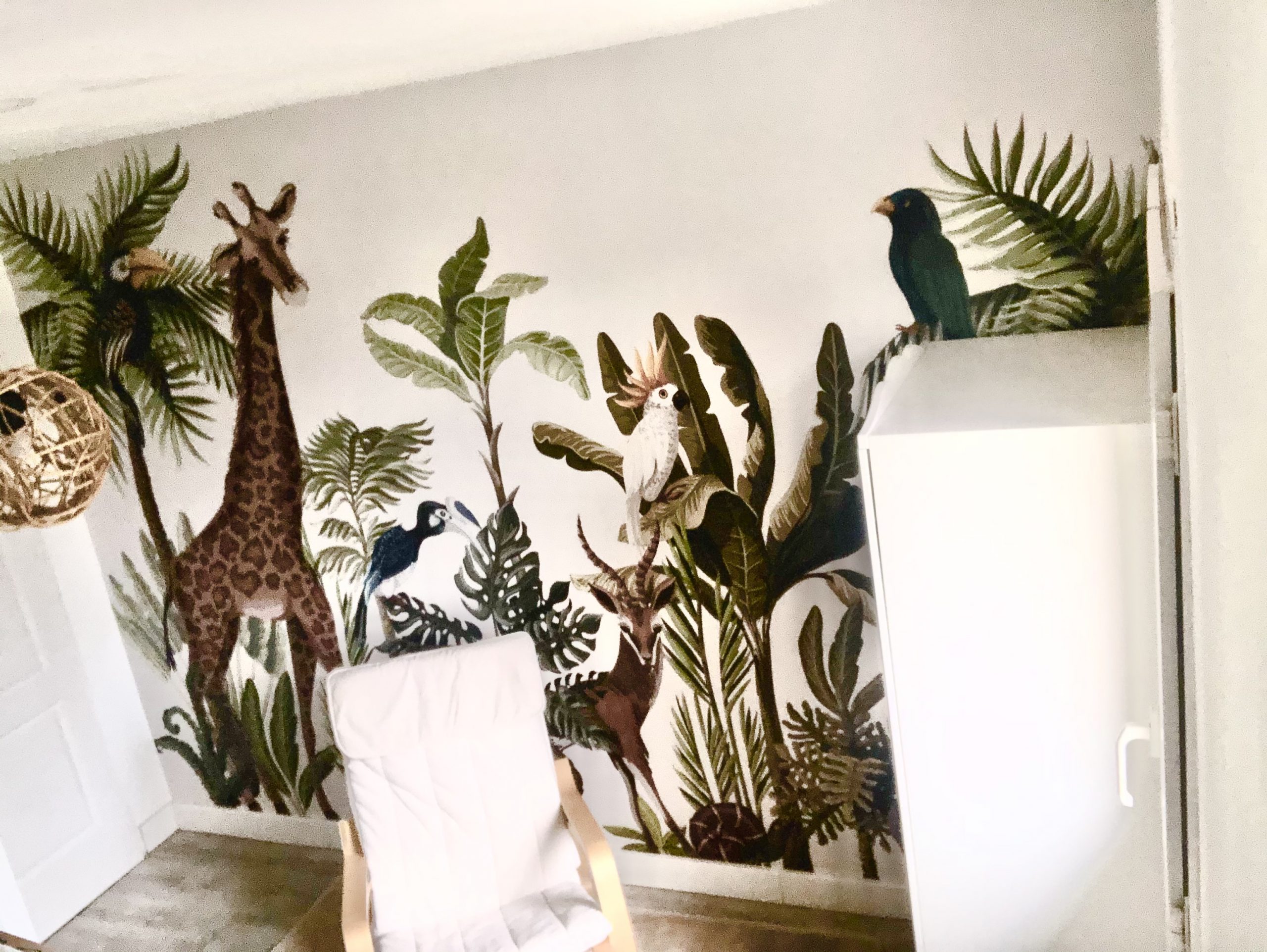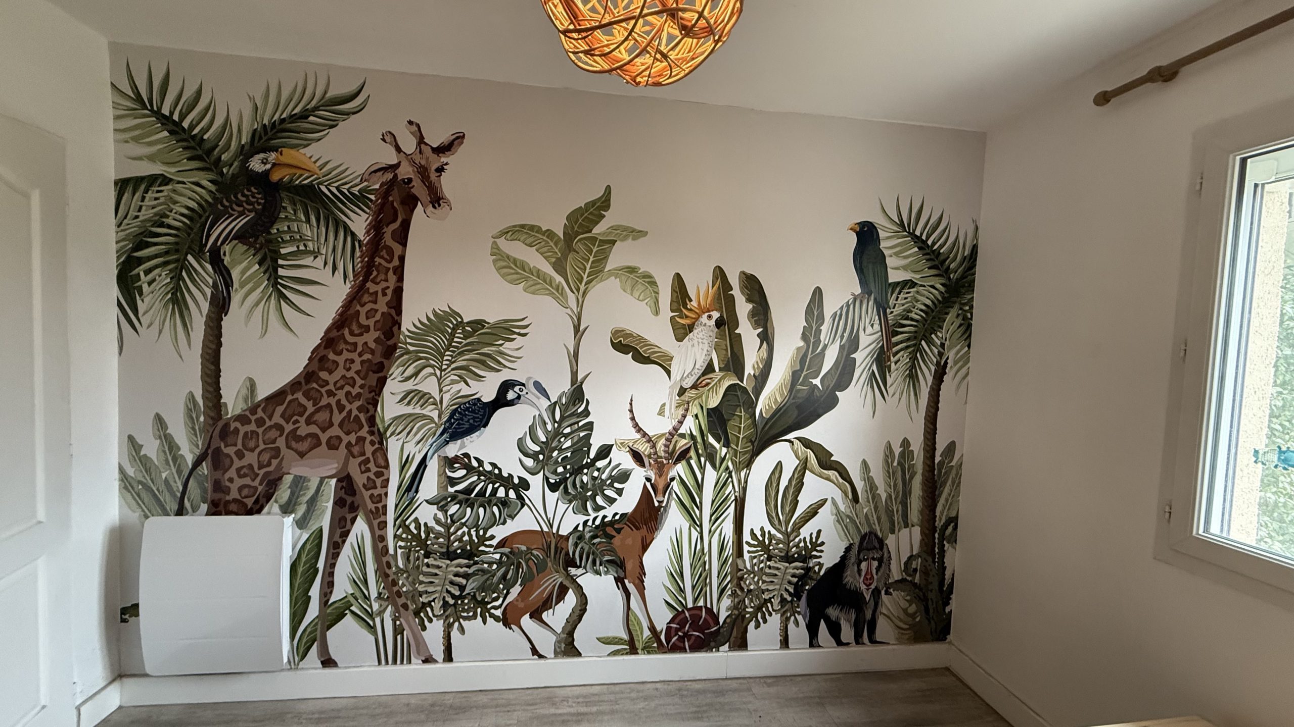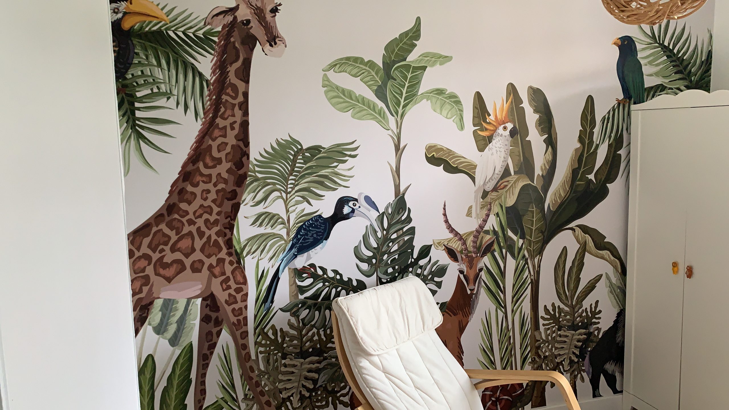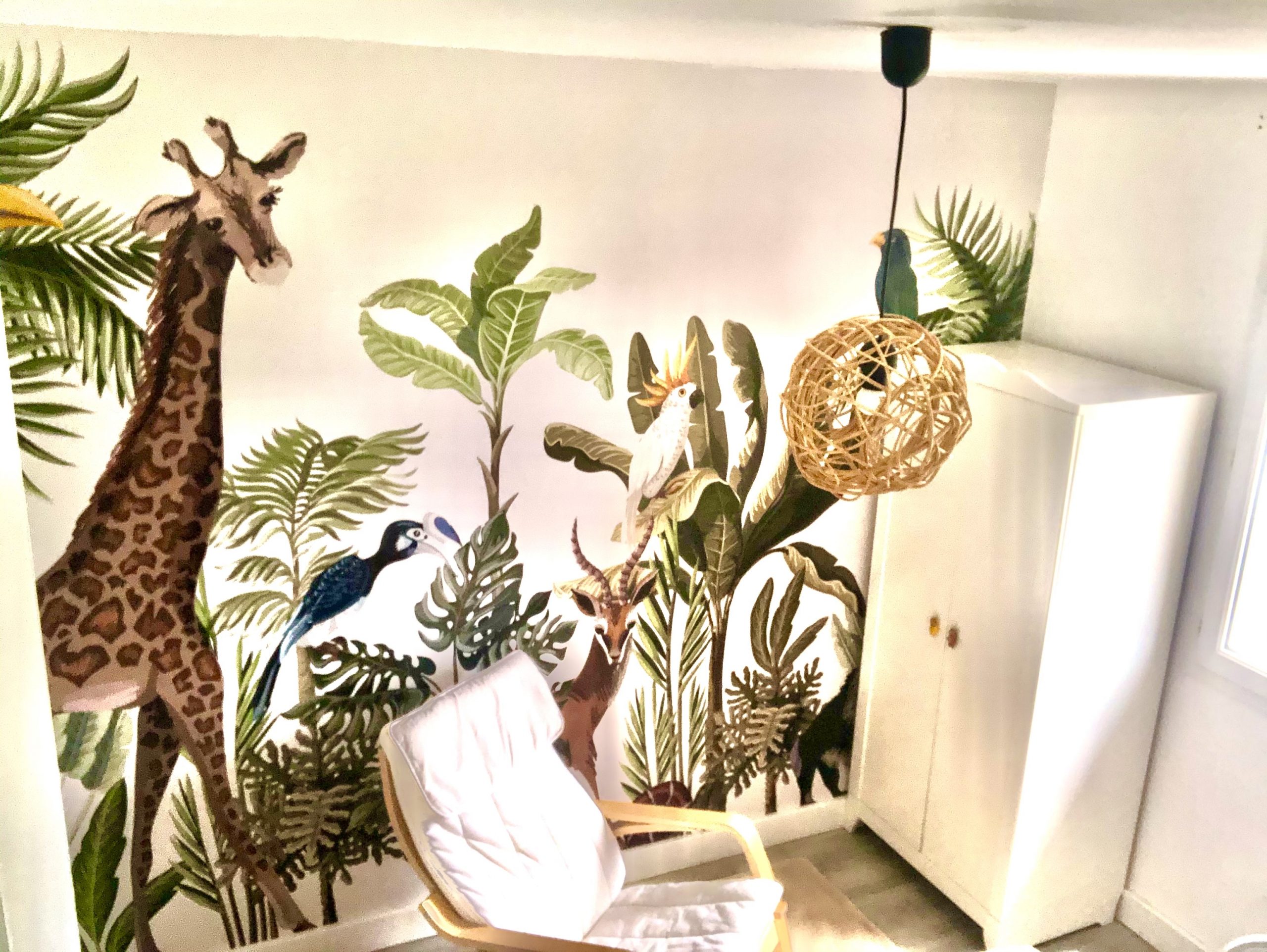 Recientemente, tuvimos el placer de instalar un fotomural en una habitación infantil en una casa particular. La imagen elegida para este proyecto fue una selva llena de animales como elefantes, jirafas y aves exóticas, creando un ambiente lleno de aventura.