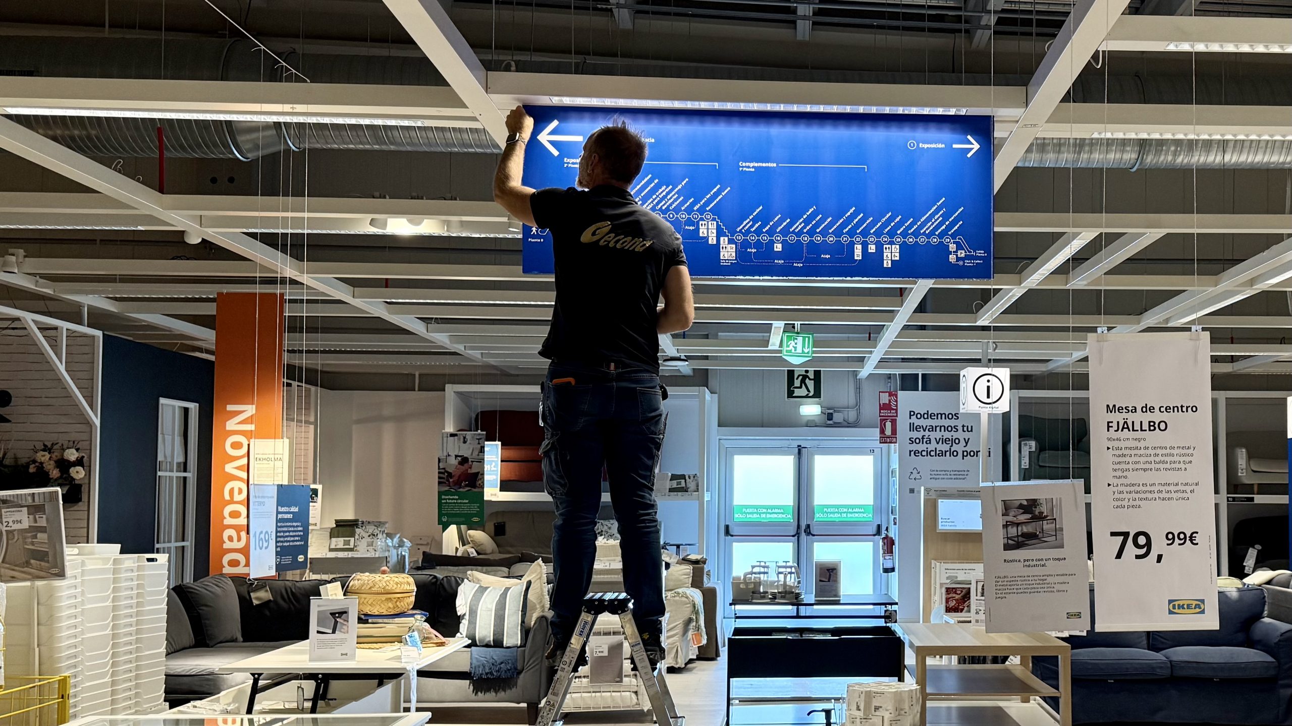 Un trabajo cuidado al detalle para que la señalética siga siendo clara, funcional y con la imagen que caracteriza a Ikea.