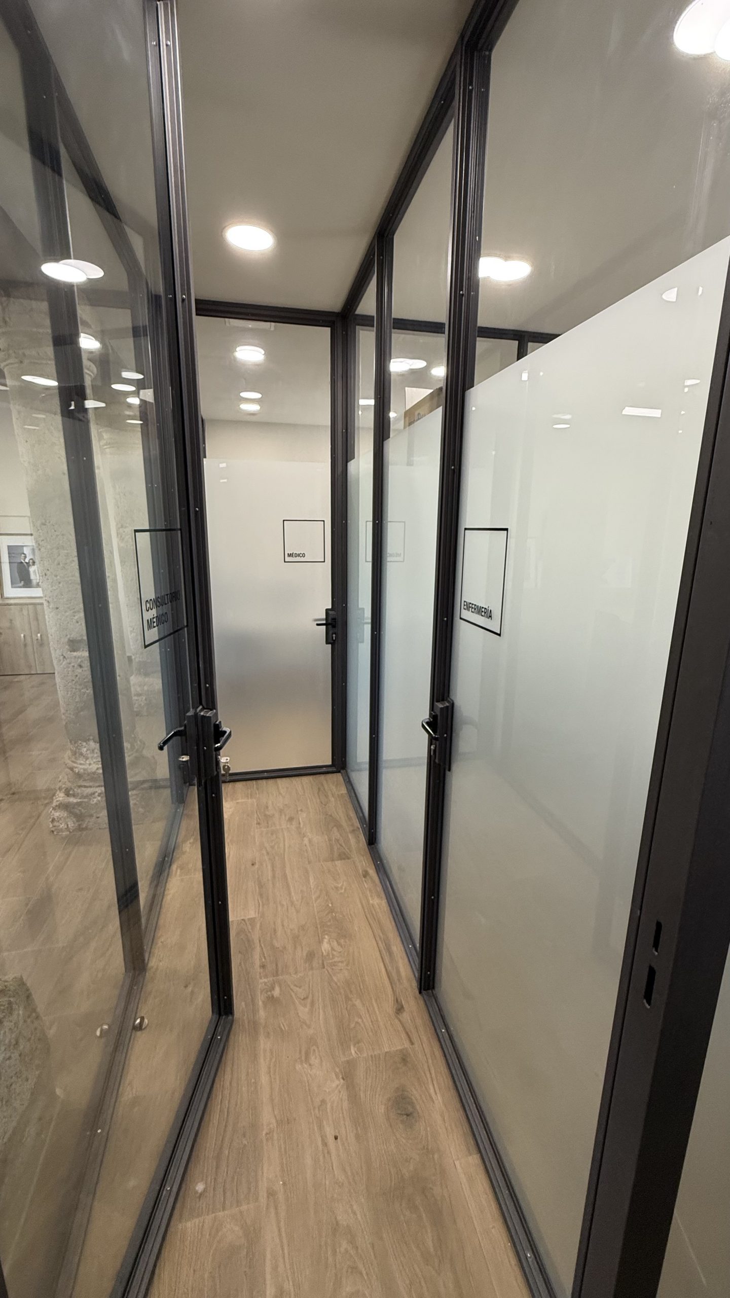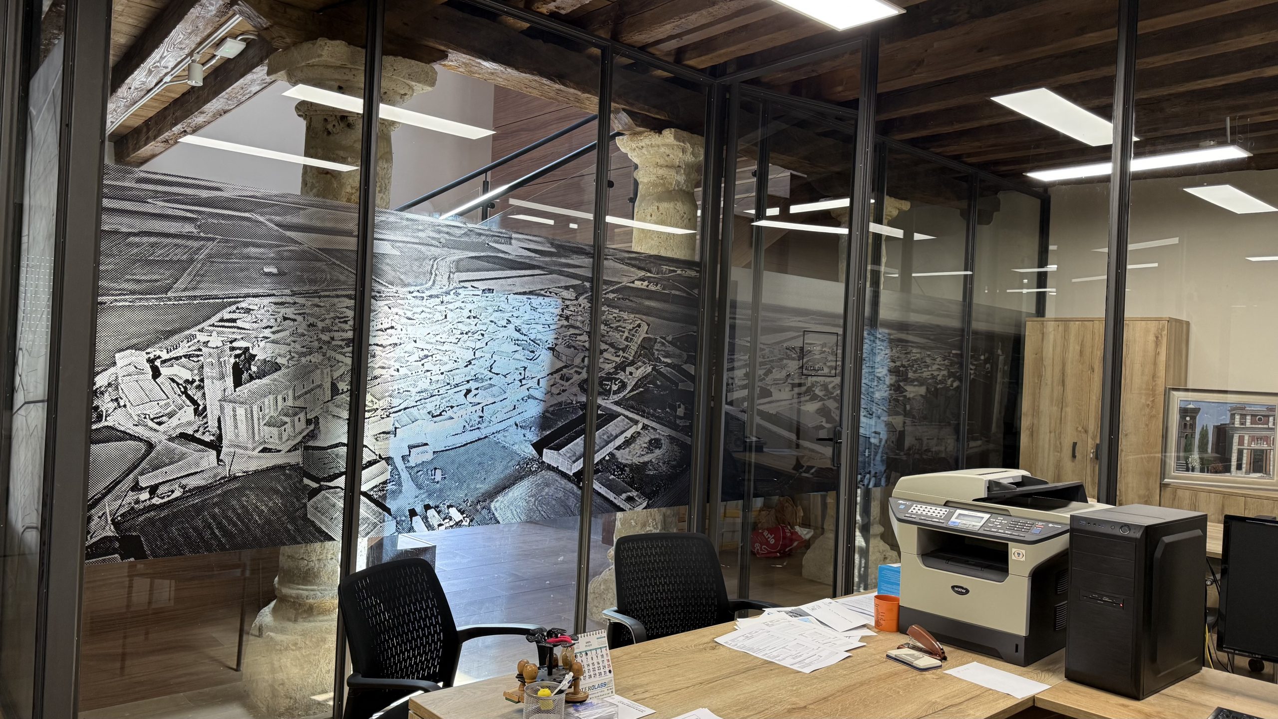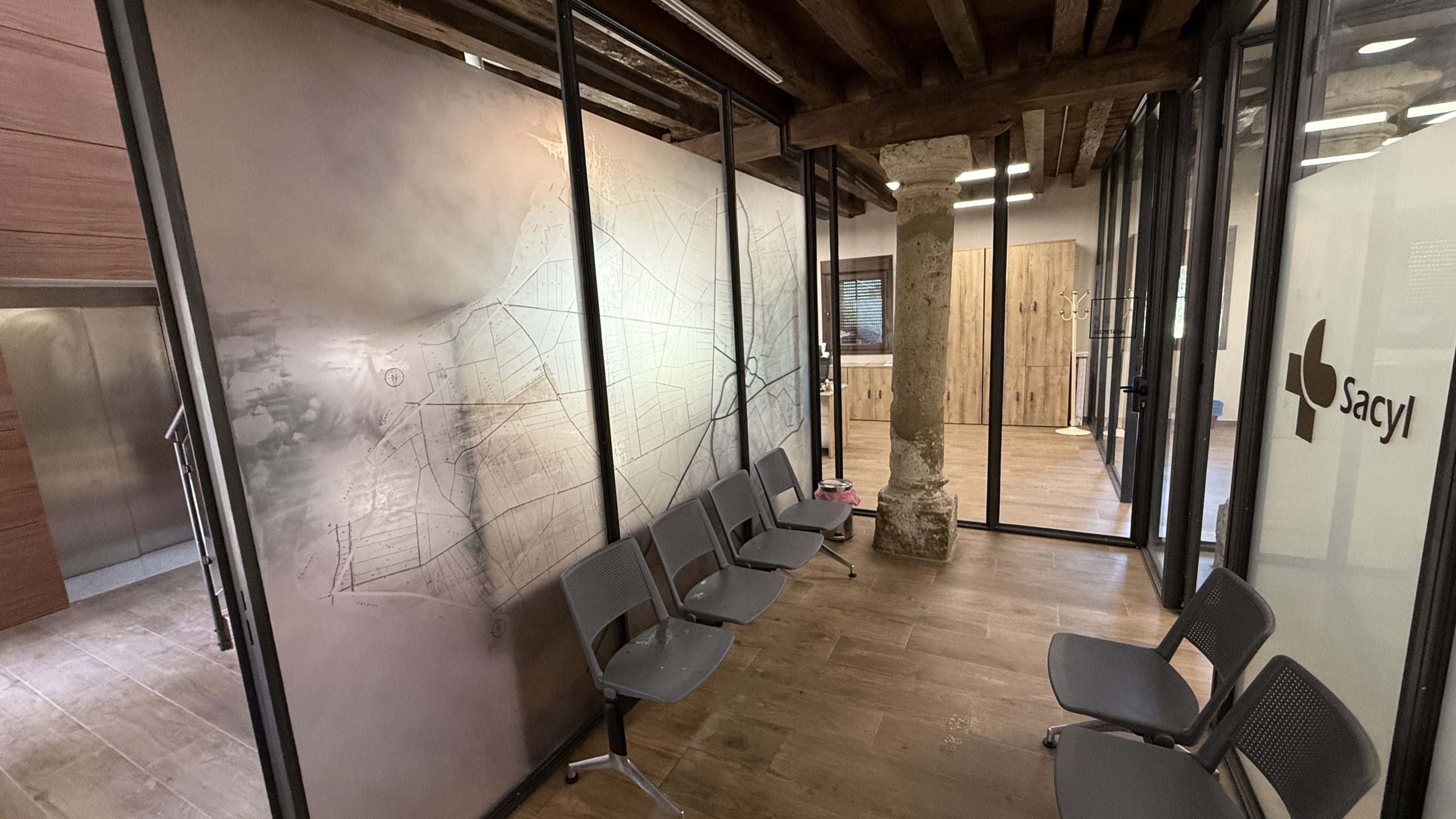 Recientemente llevamos a cabo la colocación de vinilos al ácido impresos en el despacho de la alcaldía y en la entrada del consultorio médico de Autillo de Campos.